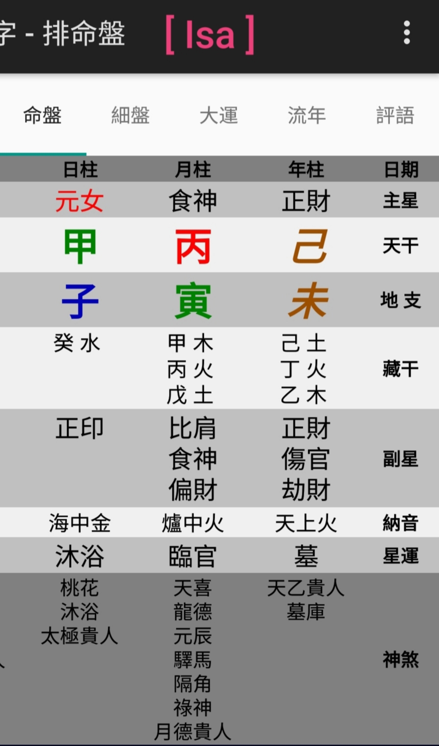 呵呵呵。。你看俺跟楊采妮的八字是挺相似的喲! 都是甲子己未寅,比肩正印正財食神旺又坐禄神驿馬命格其實都必需到遠方海外發展也是迟婚遠嫁的命! (但我現在根本都不想再談婚論嫁了! 俺現阶段年龄精神體力健康状态已经無法同时去應付那麽多繁重复杂劳累的事情,结婚生子真的是太复杂麻煩難搞的事又會影响到我個人的修行原則,俺還是有所取舍靠自己靠長輩貴人比较好) 我們只是五行忌神和童年青少年運势不一样而已! 但性格大致上是同類型的人!